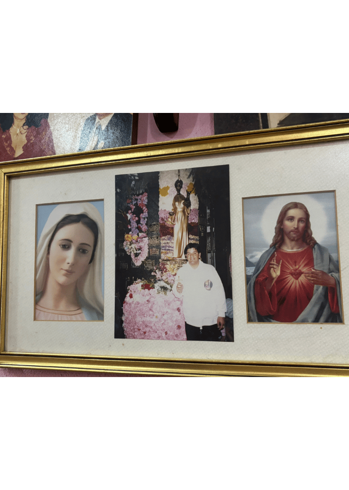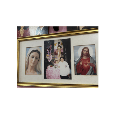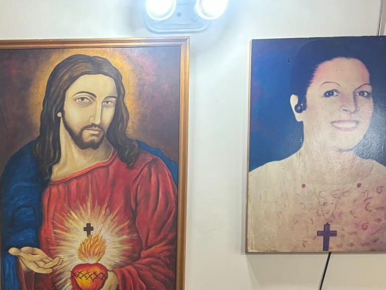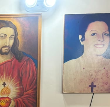Cuadros que tiene Damián en su despacho: el Sagrado Corazón de Jesús y la hermanita Irma. Foto: Milagros Pearson